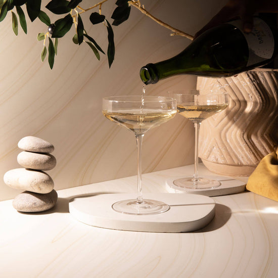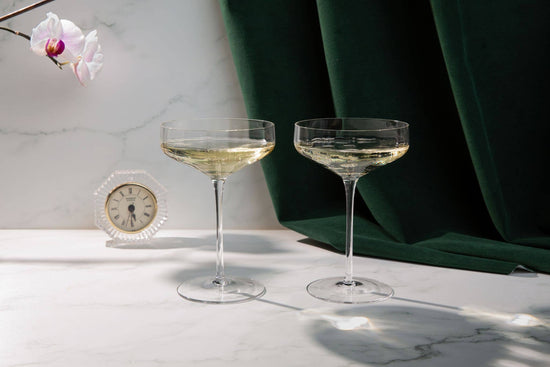 Introducing Sister.ly Drinkware's stunning Angled Coupe Cocktail Glasses, the perfect blend of sophistication and whimsy that will elevate your glassware collection to new heights. These exquisitely crafted glasses boast a one-of-a-kind paneling design that not only catches the eye but also creates a mesmerizing dance of light and shadow for an unparalleled drinking experience.