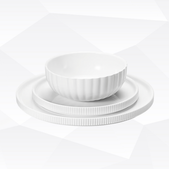 Presenting your food is an important part of the dining experience and this cool and contemporary porcelain dinnerware set is the perfect solution to stylish serving. Inspired by functionalist designs from the Art Deco period, the bowl features soft grooves whilst the dinner plate and lunch plate have more stringent ridges. Both add tactile and a decorative element which never overshadows the food itself.