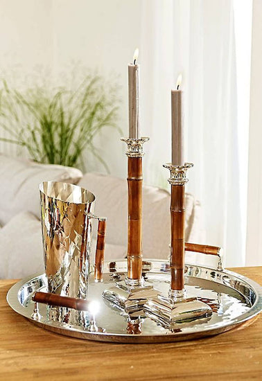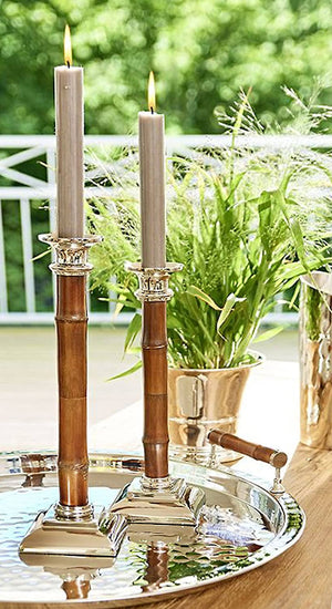Elevate your tabletop with our exquisite candlesticks crafted from genuine bamboo and polished silver. The natural warmth of hand-finished bamboo is perfectly paired with the sleek sophistication of silver-plated accents, creating a timeless blend of organic elegance and modern refinement. Each piece is slightly unique, showcasing the character of the natural materials. Ideal for dinner parties, coastal retreats, or refined everyday living.