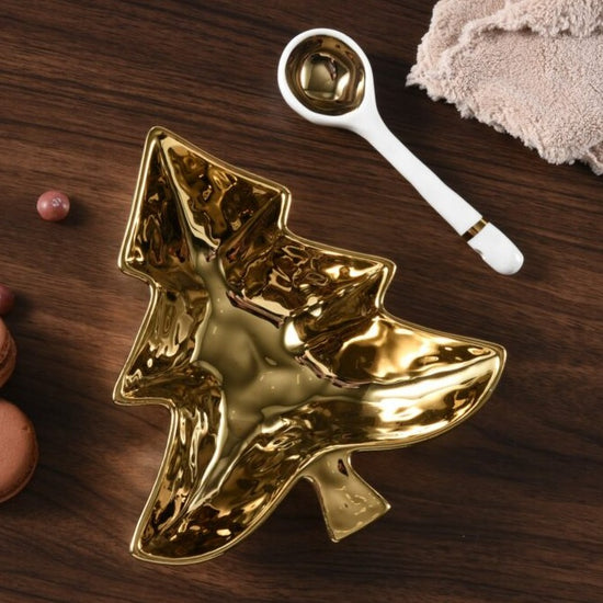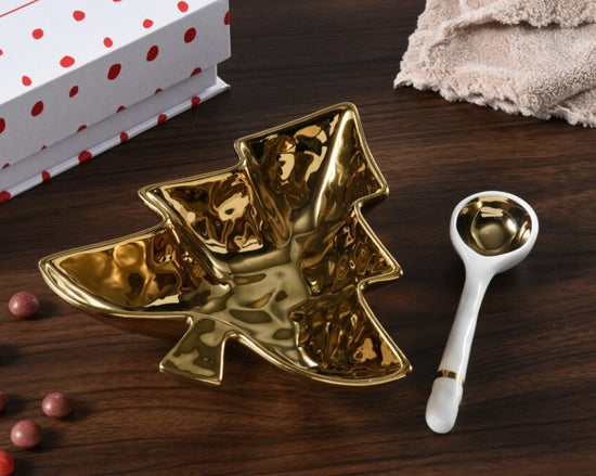 This festive Christmas Tree-shaped bowl in stunning gold tone. Ideal for all gifting occasions or to gift to yourself! Great for serving candies, nuts, fruit or condiments!