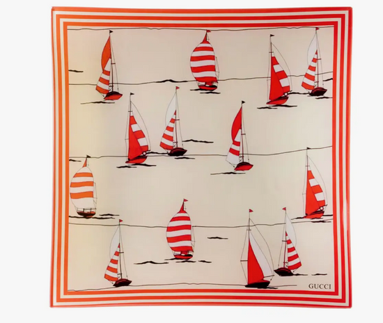 Gucci pattern designer tray. This is the bigger companion to the trinket tray. The perfect Coastal catch all for keys wallets or jewelry. 12" x 12" Unbreakable Glass. Can also be used as a wall art!
