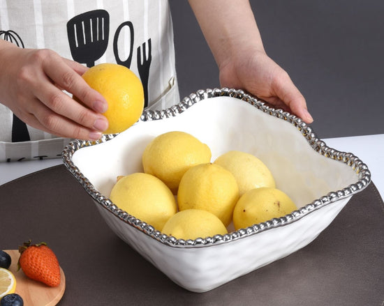 Elevate your presentation at larger gatherings with the versatile Extra Large Square Bowl, perfect for showcasing pasta, salads, veggies, or fruit. This spacious bowl not only accommodates a variety of foods but also brings a beautiful aesthetic to the table, making it an ideal choice for serving and impressing guests with its versatile functionality and elegant design.