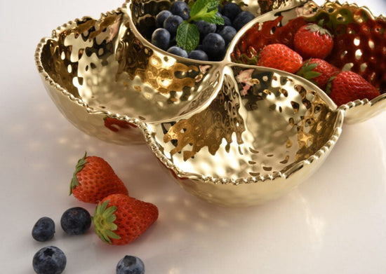 The Four Section Bowl is your go-to for appetizers, tapas, and antipasto. But wait, there's more! It's also perfect for assembling toppings during a sundae, taco, or pizza night—endless possibilities in one stylish bowl!