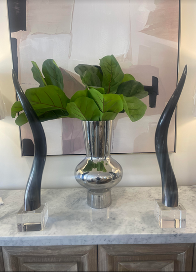 Elevate your decor with this chic pair of mounted polished steer horns on lucite.