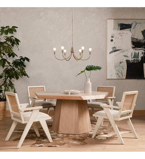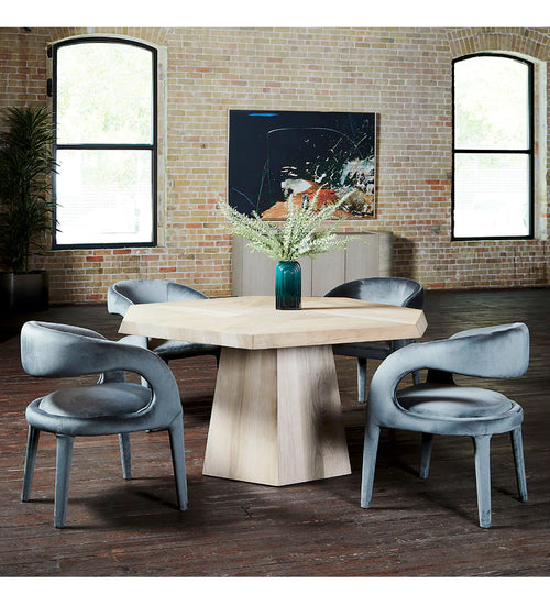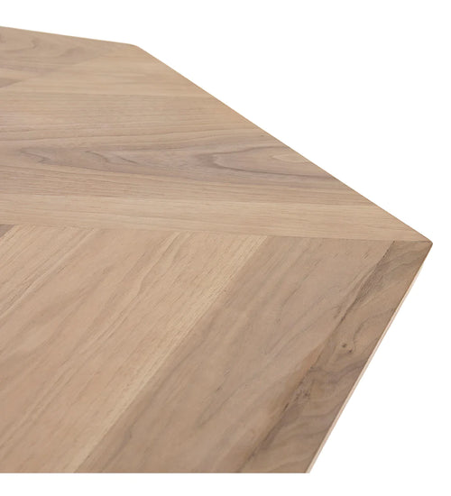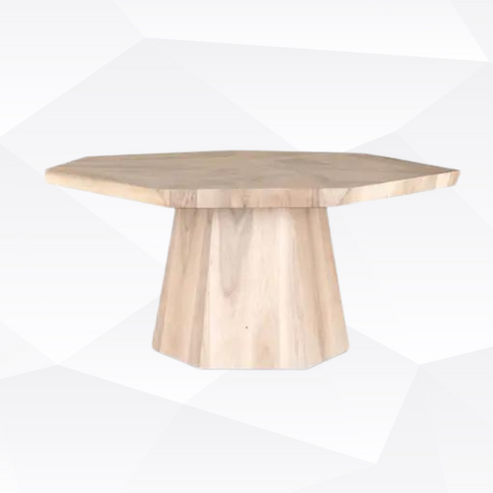 This Light Wood Dinning table are blended and smoothed for a soft look with rich depth and sides form a casual heptagon. Each style slightly unique, thanks to materials' natural quality.