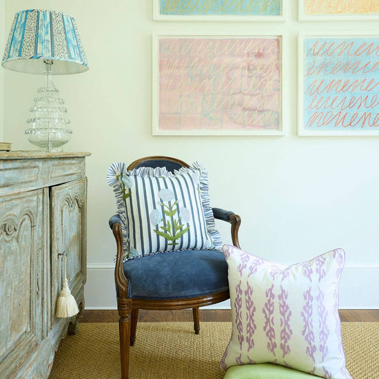 Meet the Marigold Accent Pillows! On a recent trip to India with Laura’s daughter, Sumner, the two journeyed through the bustling markets of Delhi, Jaipur, and Udaipur. Through their travels, the Marigold Accent Pillow was born – inspired by the cheerful hues of marigold flowers, along with the cherished memories, adventures and culture of India. These pillows are designed to mix and match with your favorite Laura Park patterns, seamlessly fitting into any space in your home, from the sofa to the patio, while embracing the rich heritage of India.