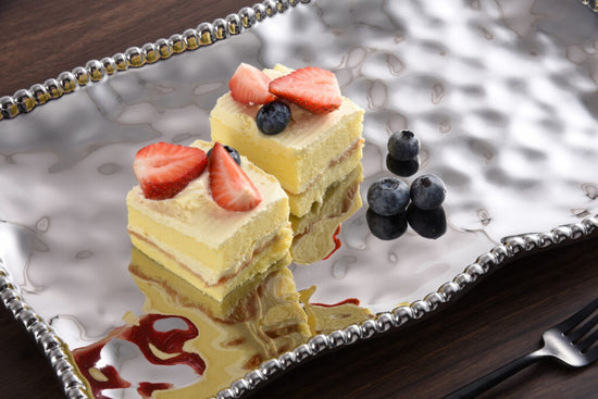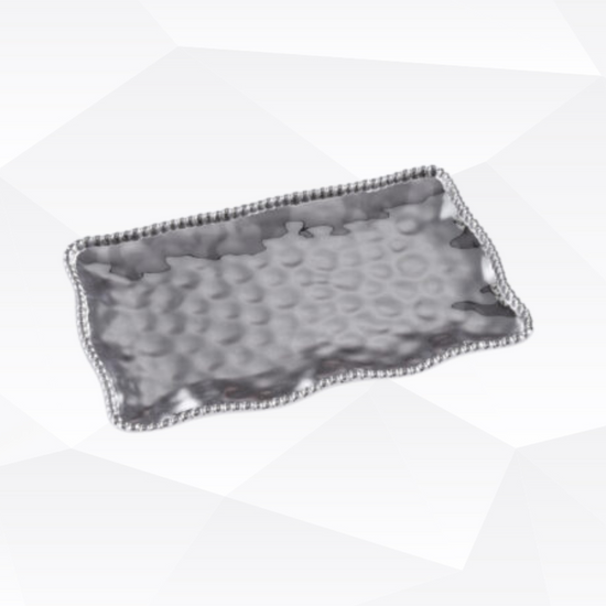 Crafted in a stunning silver titanium finish with lustrous silver beads. Great for serving a freshly sliced baguette, stuffed mushrooms, or fruit.