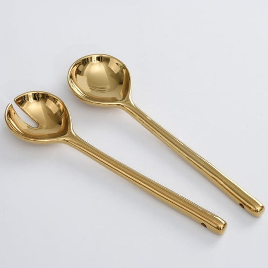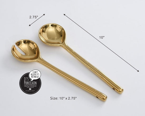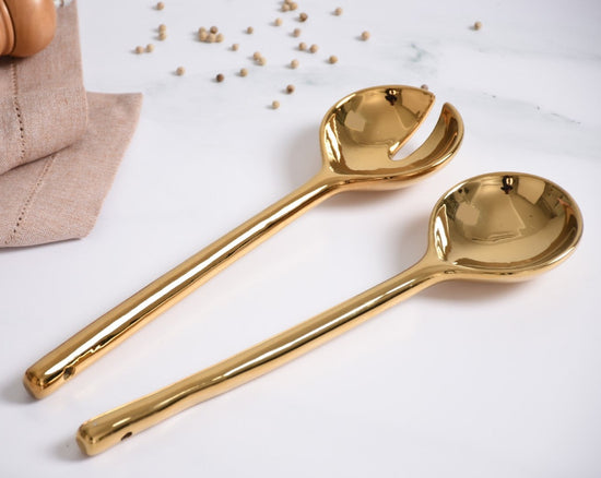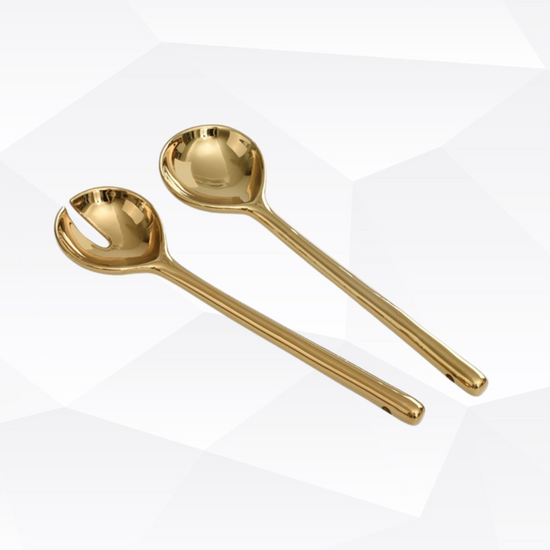 The Salad Servers hailing from our Madera Collection introduce a touch of sophistication and refinement to every dining setting. Perfect for elevating any dinner party ambiance, these servers are meticulously crafted from opulent gold-toned porcelain, adding an element of elegance to the table.
