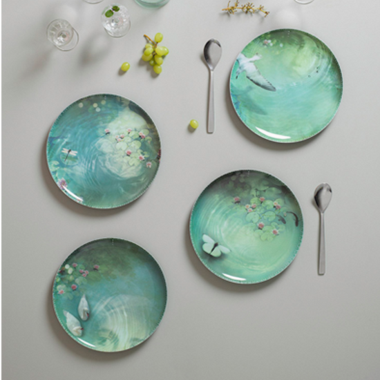 The Monet inspired design features 4 different plates than the ones included in the original stackable and can be added to just make the ginger jar taller creating a plate setting for 8!
