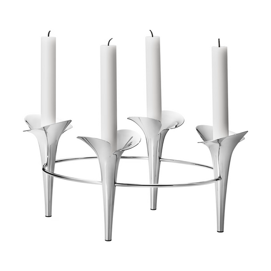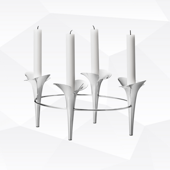 Designer Helle Damkjær took inspiration from the blooming cherry blossoms in Japan when designing the coveted Bloom collection. This taper candleholder in polished stainless steel can hold up to four candles and features the defining elements of the collection, which bring the beauty of nature into our homes.